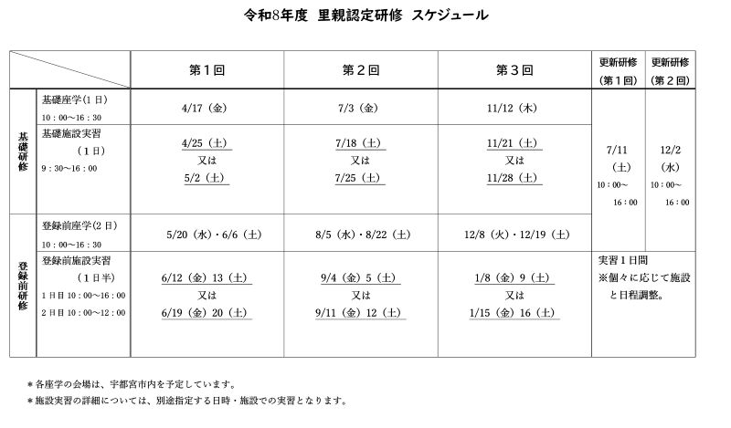 里親認定研修スケジュールのお知らせ